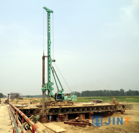 针对该桩基工程特点,施承建单位中铁大桥局二公司制定了周密的施工计划,并选择了上海金泰生产的SH36W多功能钻机进行施工。SH36W是采用大三角结构桅杆结构的大型旋挖钻机,配置了特制5层摩阻钻杆、高抗压抗形变底盘,设备稳定性强、施工能力高。在将军渡黄河特大桥复杂的施工环境下,该设备创造了单桩21小时成孔的施工速度,创造了国内超大、超深桩的施工的新记录,为将军渡黄河特大桥工程按期完成提供了保证,得到施工单位、业主单位的肯定和认可。