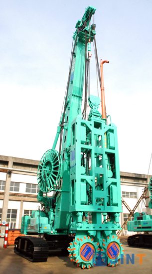 SX30双轮铣是金泰公司集成自身近年来在液压抓斗技术、深层铣削搅拌技术、气举反循环工艺、液压动力输送和控制技术等方面的科研成果,于2011年下半年开发成功的地下连续墙施工设备高端产品。该产品利用公司自主产品SG60抓斗主机,并配备双油管绞盘、泄油管绞盘、压缩空气管绞盘、保压油箱等部件,有效地突破液压抓斗在中硬度地层中地连墙施工困难的技术障碍,对当前地下连续墙施工的主流设备——液压抓斗的成槽功能和入岩效率大幅提升,特别是铣削摆动机构的专利技术,较好地解决了铣削工作的盲区问题。