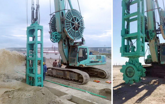哈密是新疆维吾尔自治区的“东大门”,素有“西域咽喉,东西孔道”之称,也是国家“一带一路”西进战略的重要节点。日前,八台SG地连墙抓斗、三台DX单轮铣槽机、二台SD/SH多功能钻机组成的上海金泰桩工机械“战队”现身新疆哈密淖毛湖地区,为新疆广汇能源有限公司120万吨甲醛/80万吨二甲醚项目的配套工程——地下水污染防治项目助战立威。上海金泰的SG抓斗、SD/SH多功能钻机等主流产品与最新研制的“定制化”产品——DX800单论铣槽机同台竞技、默契配合,再次谱写金泰多系列装备的协同工艺发挥威力的经典案例。