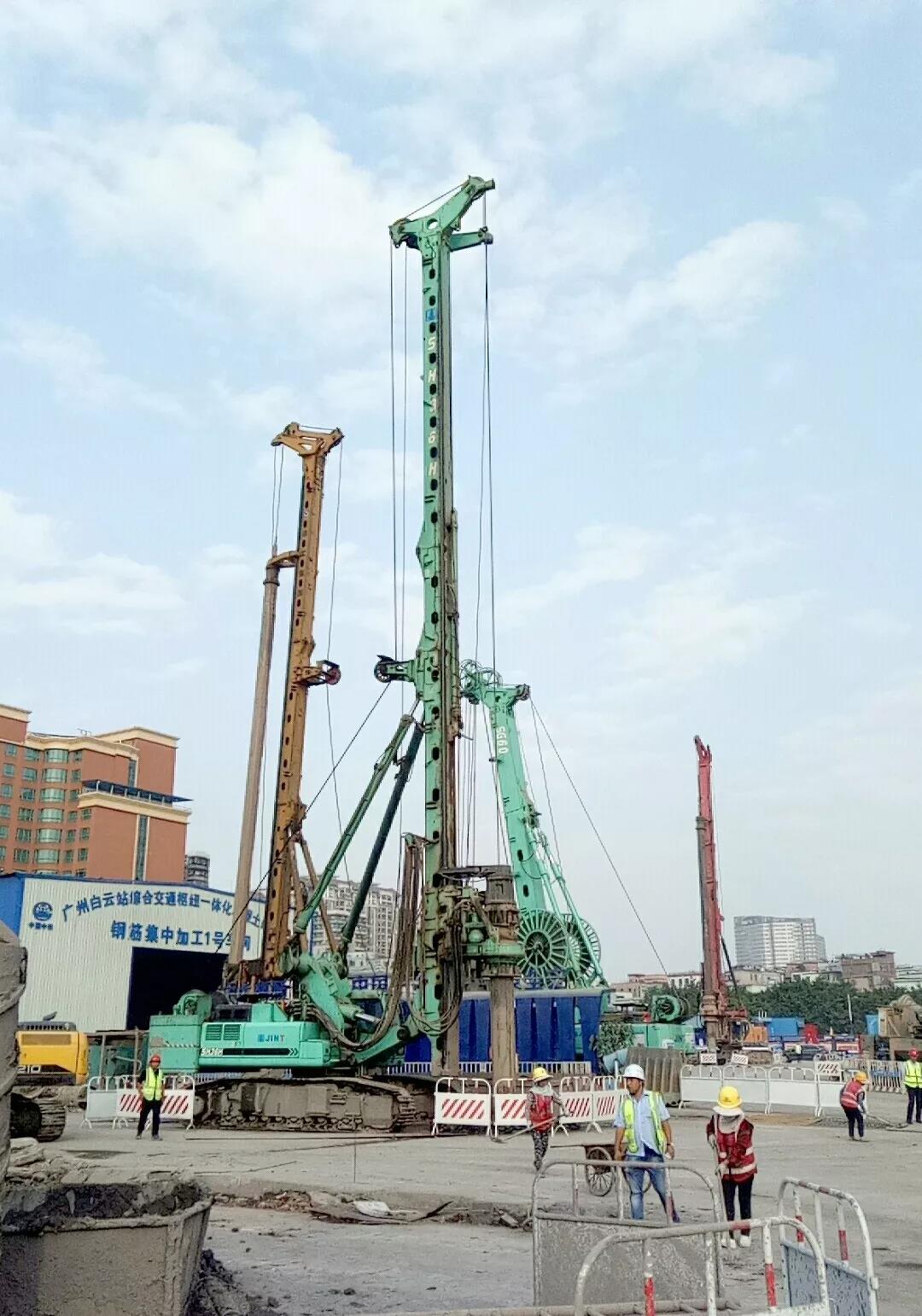广州白云站(棠溪站)于2019年1月开工,是集各种方式一体化换乘的综合交通枢纽。此次工程量大,施工难度大,技术要求高且项目地层极其复杂,0~5米回填层,5~12米中粗砂层,12~13米中风化灰岩,13~15米溶洞,15~24米微风化灰岩,24~27米溶洞,27~46微风化灰岩。据现场所悉,自施工以来现场大部分旋挖设备快的四五天一根桩,慢的十多天一根,其中有些旋挖设备一个月三根桩都无法完成。金泰SH46A虽进场最晚,但目前已完成2根1.5孔径的桩,平均每80小时完成一根46.8米的桩(入岩27米),超过大部分同场设备。除此以外,金泰SX40A双轮铣在现场也表现不俗,在抓斗、旋挖、双轮铣组合工艺下,每7天左右完成一幅宽1.2米、长6米、深37米的槽,较现场同类产品早5~7天完成施工,赢得用户以及行业专家的高度评价。与此同时为了更好的服务用户,上海金泰广州分公司的售后服务人员专门蹲点,为现场的设备保驾护航,只要客户需要,将第一时间为客户排忧解难。