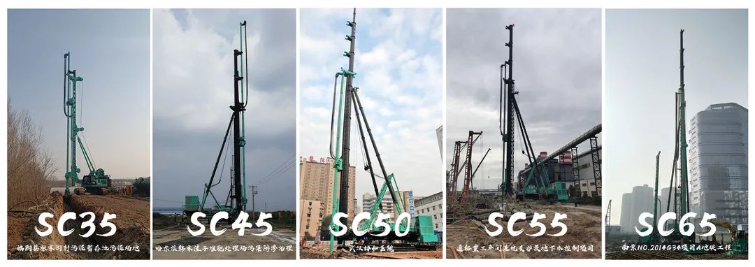 设备选型筹措阶段:工作面较为狭窄地区,可选用更为灵活的SC-45履带式设备;面对一些地质较为松软的地区,可选用桩架更大、更稳固的金泰SC-55/SC-60步履式设备进行施工。