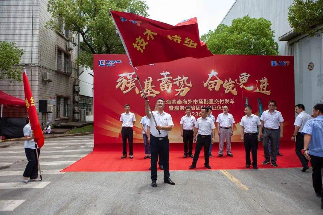 6月20日上午11时,“2023上海金泰海外市场批量交付发车暨服务保障团队出征仪式”于上海安亭洛浦路45号金泰本部隆重举行。一辆辆满载主机、附件和钻具以及现场保障用品备件的卡车从金泰本部驶向港口,奔赴中东、北美、澳洲、南亚、俄罗斯等国家和地区,为上半年的收官工作再敲重锤。上海金泰总经理黎隶万、党委书记陈雪英、董事副总经理徐峰等公司主要领导以及生产、研发、营销等各部门代表共同参加见证。