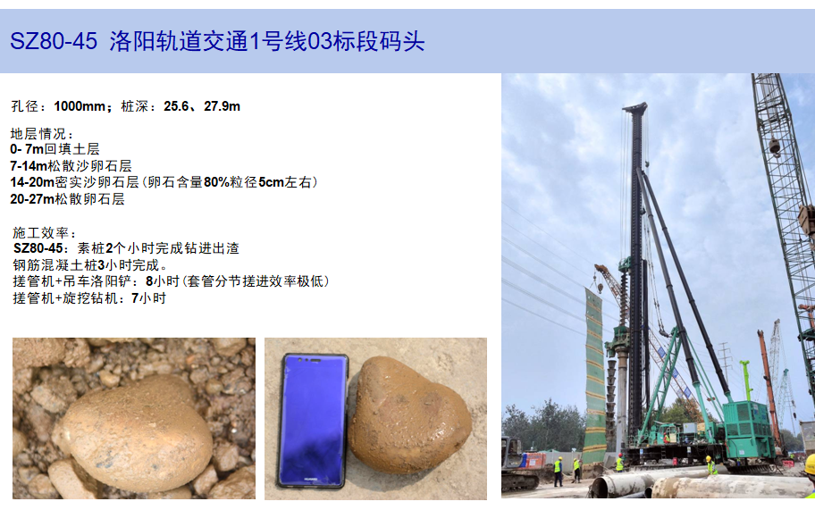 SZ80-45液压多功能钻机是一款高效率、环保型的新型多功能钻机,最大成孔深度45m,能对付在卵石、漂石层及坚硬岩层等复杂地层的高效率钻孔的入岩钻机。